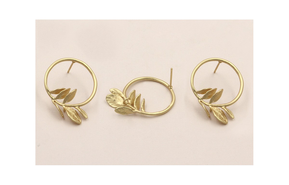 Pendiente Aro de 20mm con Rama Dorado Mate