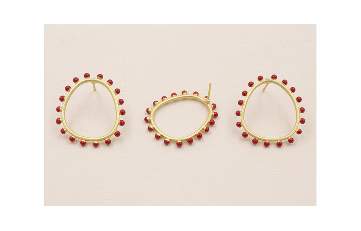 Pendiente Aro 26*22mm Bolas Coral