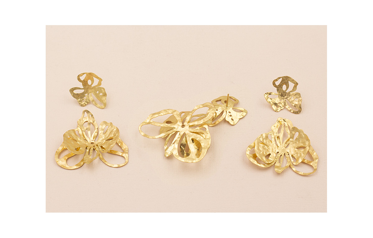 Pendiente Cascada de 2 Flores 52*40mm Oro Mate