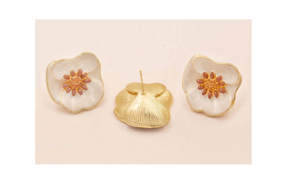 Pendiente Flor Esmalte Beige y marrón 27mm O. Mate