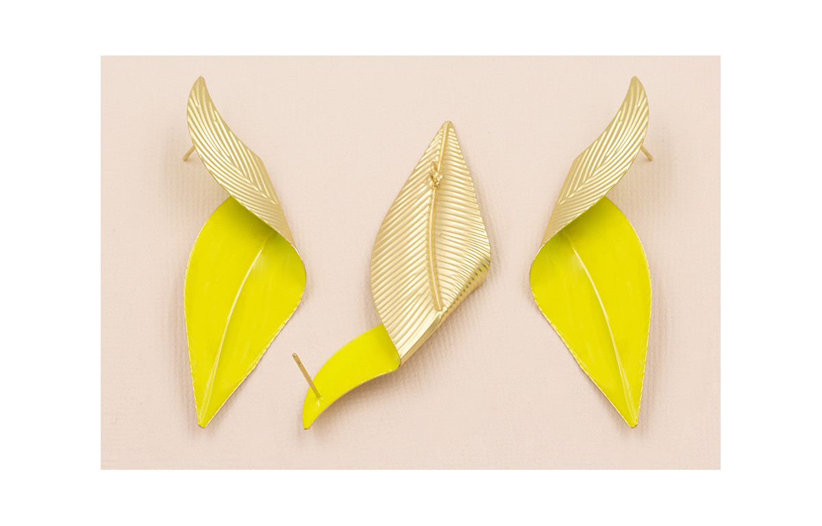 Pareja Pendientes Hoja Doblada 70*20 Esmalte Lima