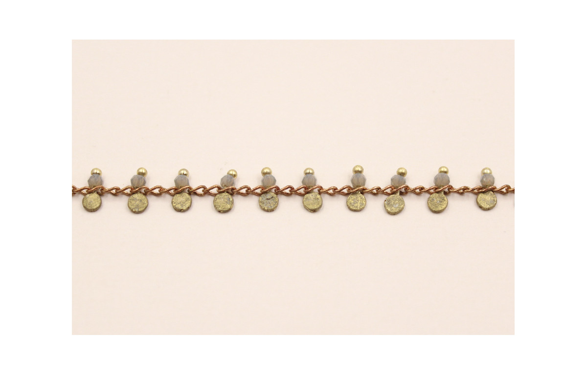 Cadena chapita latón 3mm con cristal Gris