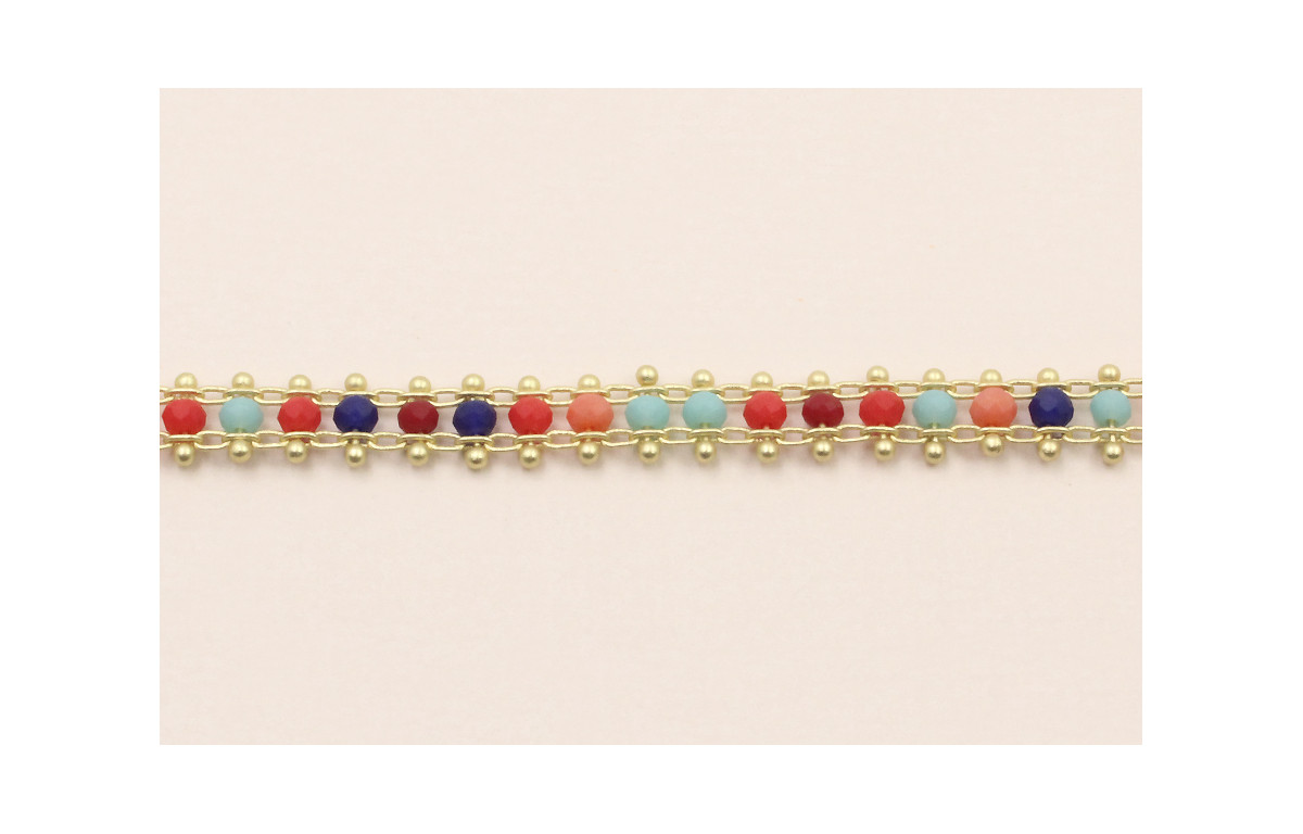Cadena cristal multicolor 3*2mm Dorado Mate