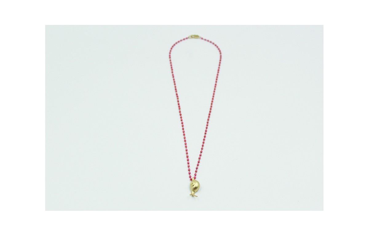 Solitario de cadena de miyuki rosa con colgante de caracol oro mate. Largo de la cadena 36cm