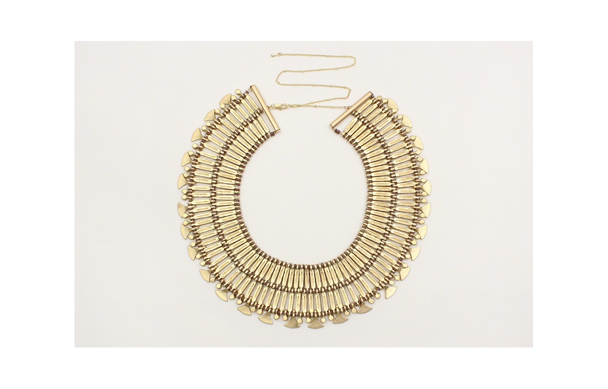 Collar babero en oro mate con entrepiezas alargada