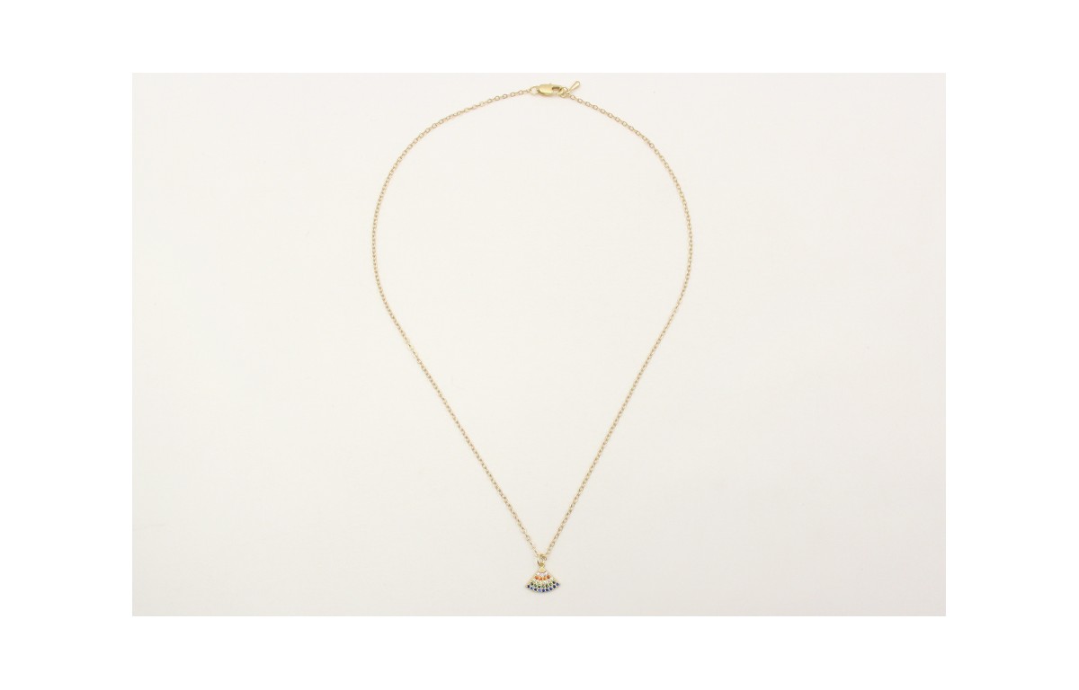 Solitario con abanico de microbrillos y cadena de eslabón pequeño en oro mate. Largo 46cm