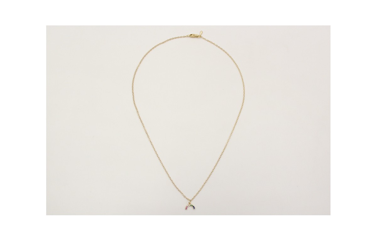 Solitario con semicirculo de microbrillos y cadena de eslabón pequeño en oro mate. Largo 46cm