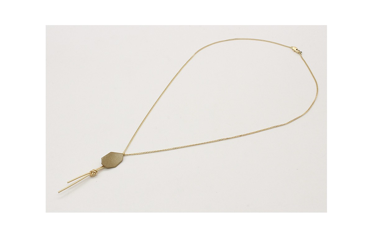 Collar cadena eslabón plano en oro mate con pieza esmaltada en coral y nudo en oro mate. Largo 58cm.