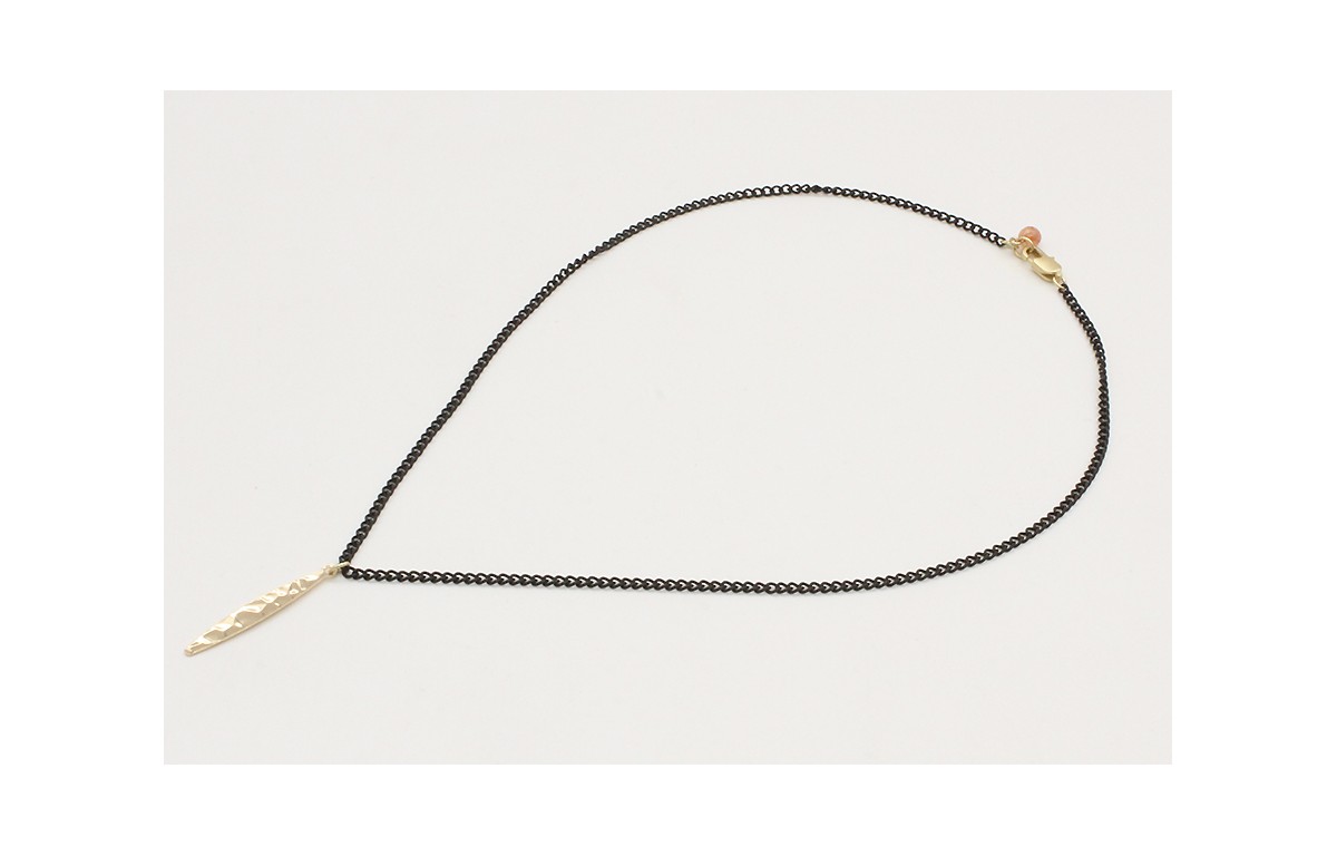 Solitario cadena eslabón negro mate con colgante lamina martilleada en oro brillo. Largo 41cm