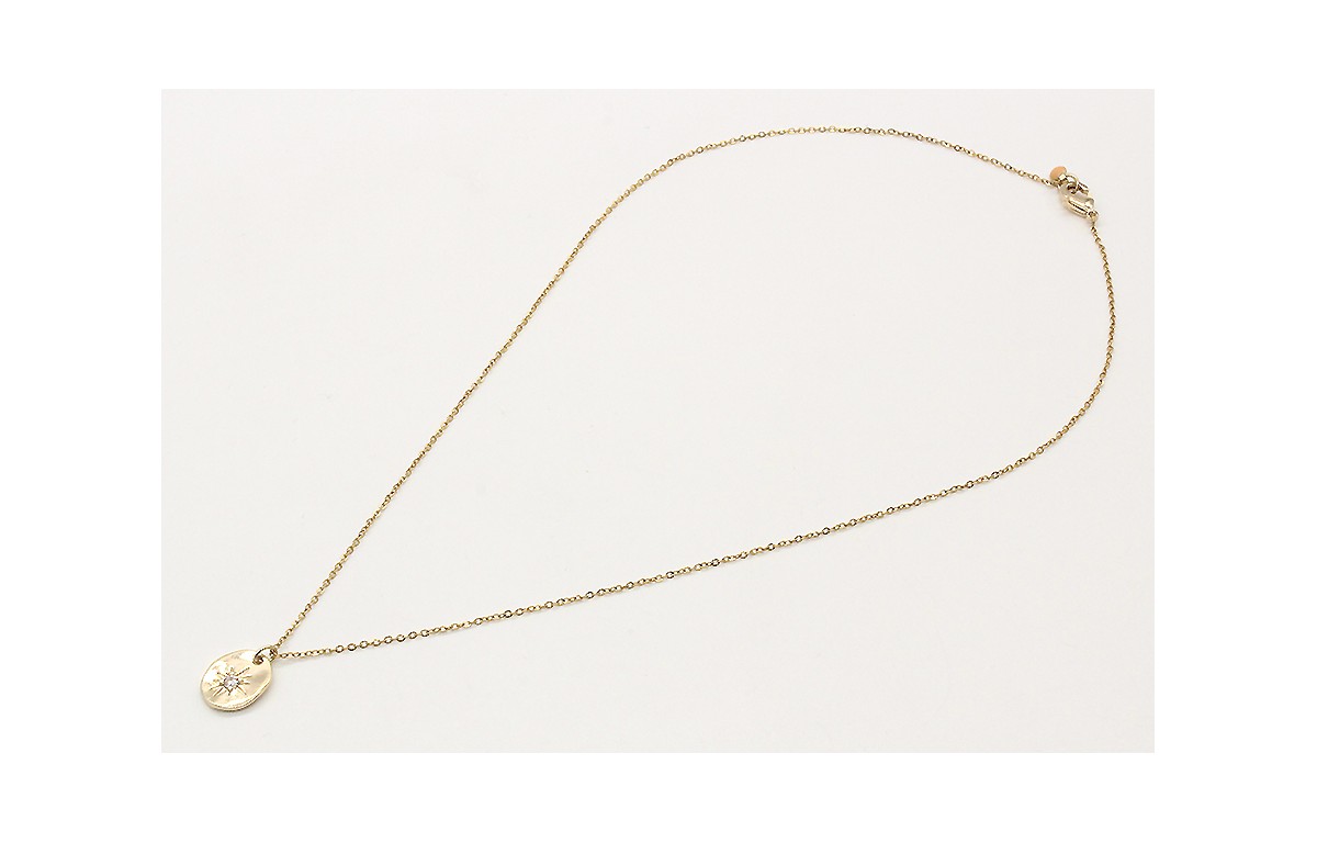 Solitario cadena eslabón pequeño oro brillo con colgante estrella microbrillos. Largo 42cm