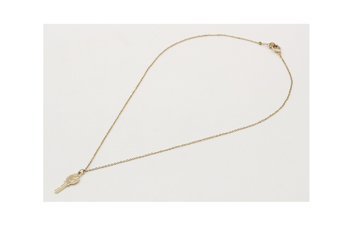 Solitario cadena eslabón pequeño oro brillo con colgante llave. Largo 42cm