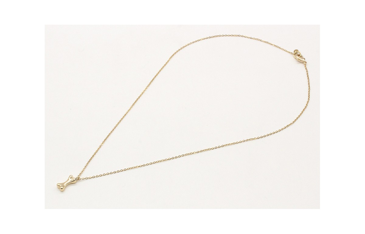 Solitario cadena eslabón pequeño oro brillo con colgante hueso. Largo 42cm