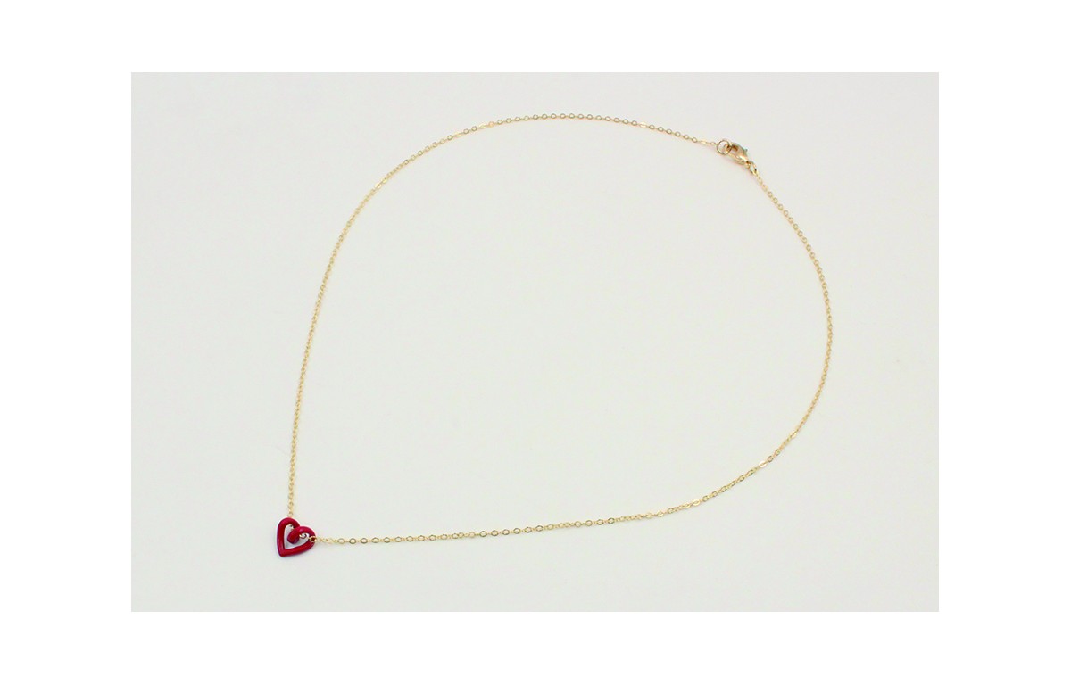 Solitario cadena de eslabón pequeño con corazón hueco esmaltado rojo. Largo 40cm.