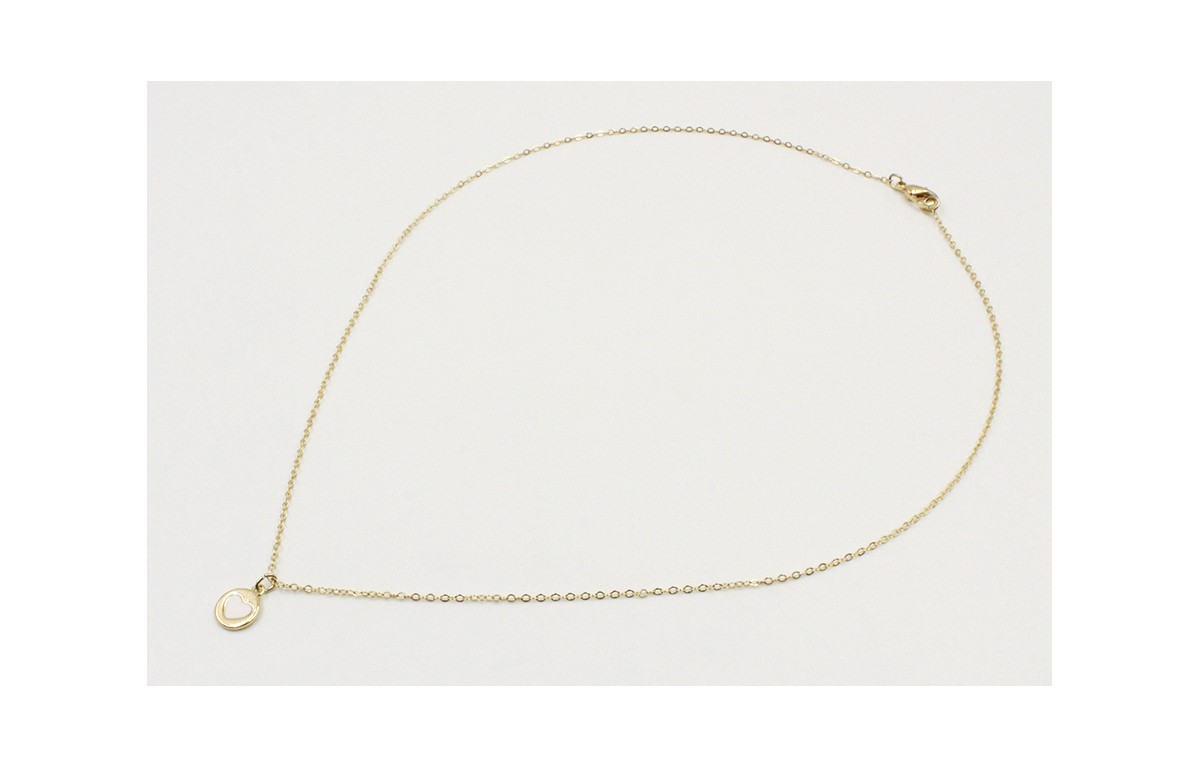 Solitario cadena de eslabón pequeño con chapa corazón esmaltado blanco. Largo 40cm.