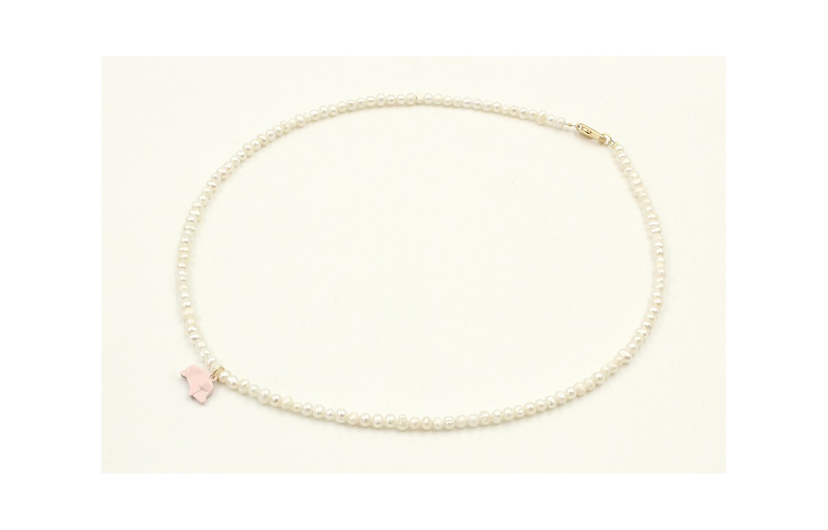 Collar con perlas y colgante cerdito esmaltado ros
