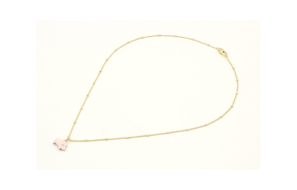 Collar cadena eslabón y micro bola oro mate con colgante cerdito rosa. Largo 41cm.