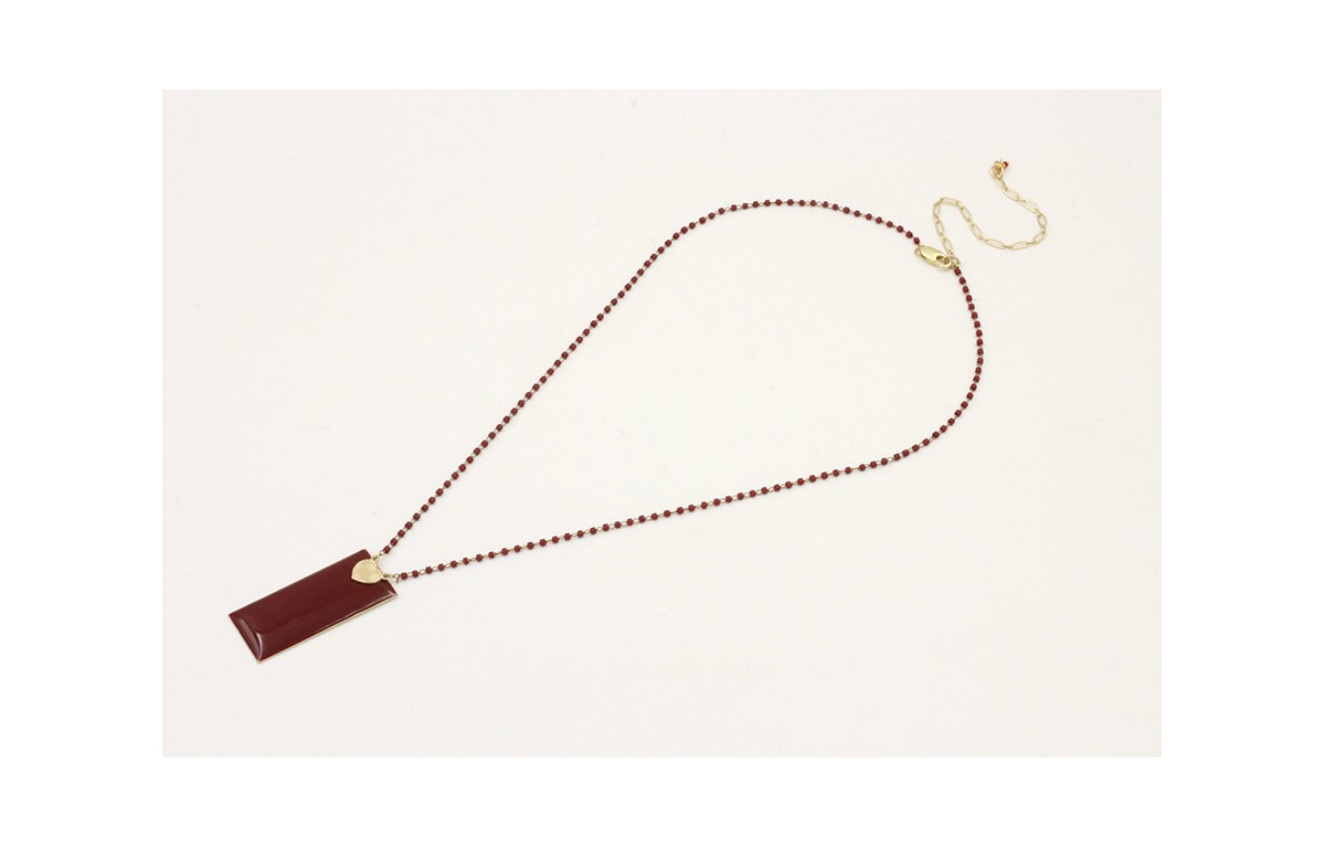 Collar cadena miyuki granate con colgante rectangu
