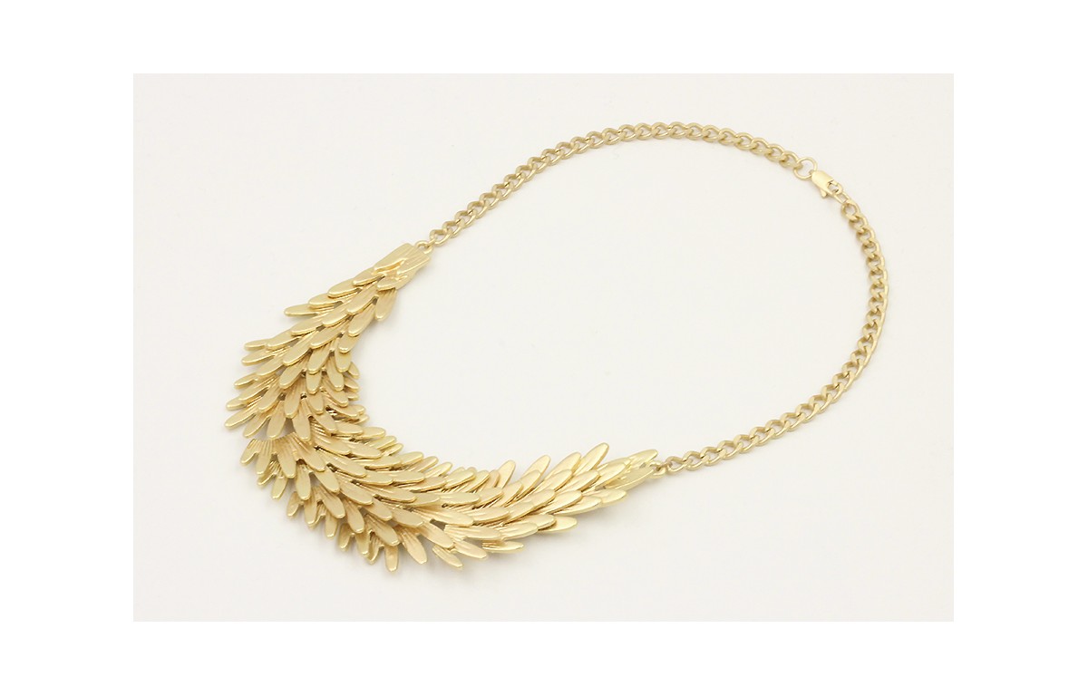 Collar tira de escamas sobrepuestas con cadena eslabón retorcido dorado mate. Largo 40cm.