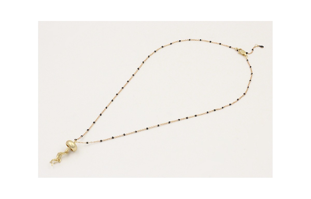 Solitario cadena micro esmalte negro colgante medusa dorada mate. Laego 40cm.