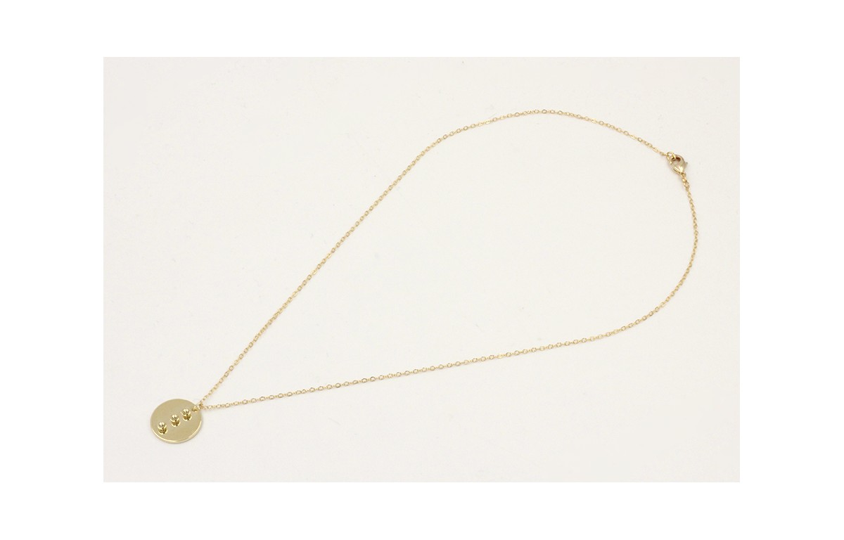 Solitario cadena eslabón pequeño dorado con colgante disco 3 bolas dorado. Largo 40cm.