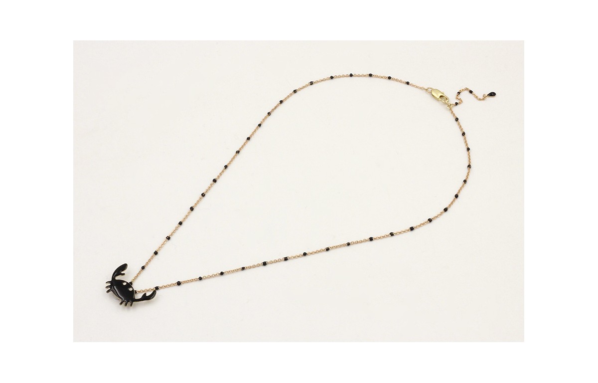 Solitario cadena micro esmalte negro con colgante cangrejo esmaltado negro. Largo 38cm.