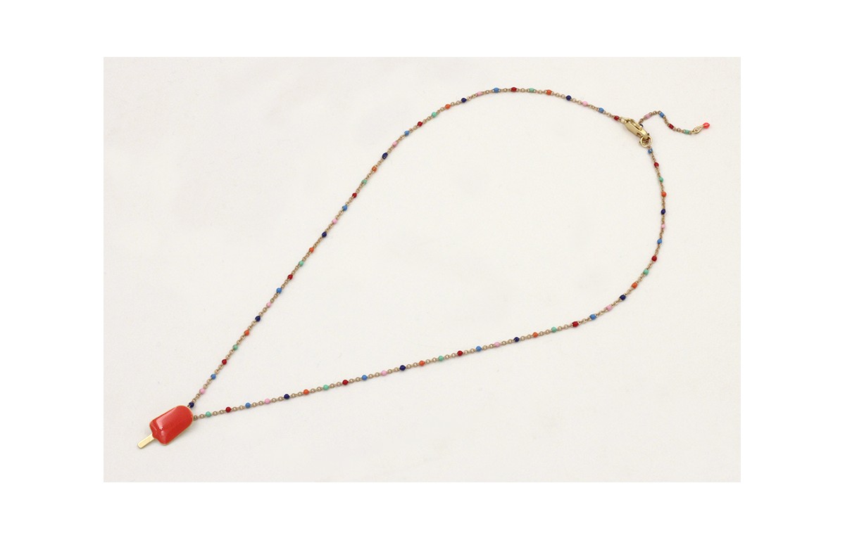 Solitario cadena micro esmalte colorines con colgante helado esmaltado naranja. Largo 38cm.