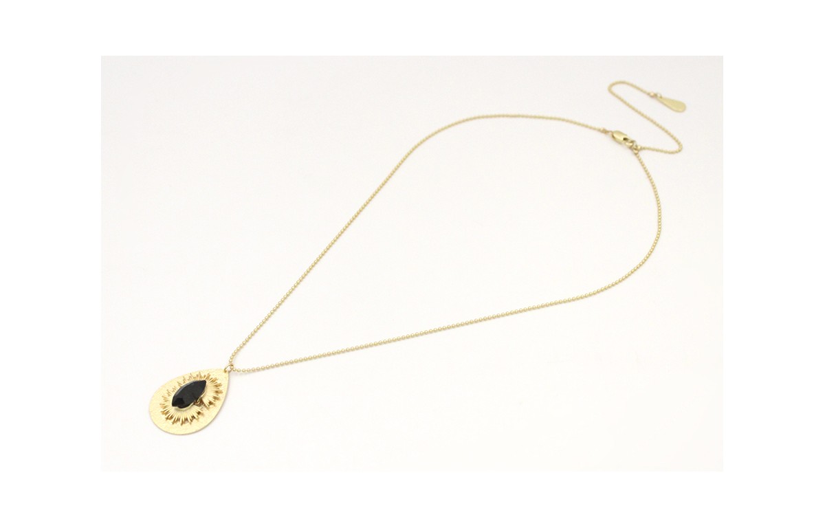 Collar cadena bola oro mate con colgante lagrima oro mate con cristal negro y sol. Largo 41cm.