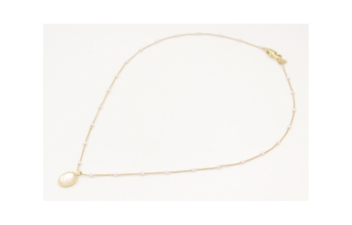 Solitario con cadena de microperlas y colgante pieza opal labrado oro mate. Largo 37cm.