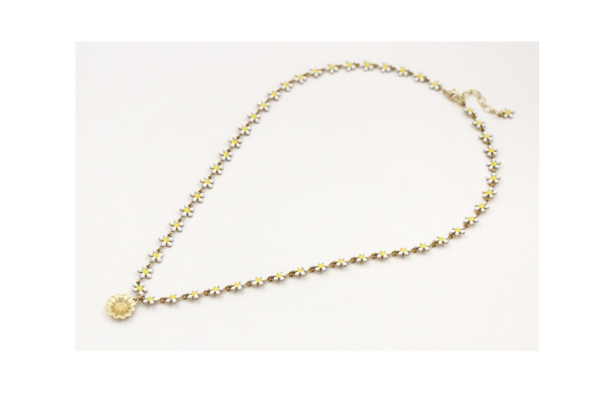 Collar cadena margaritas blancas y amarillas con c