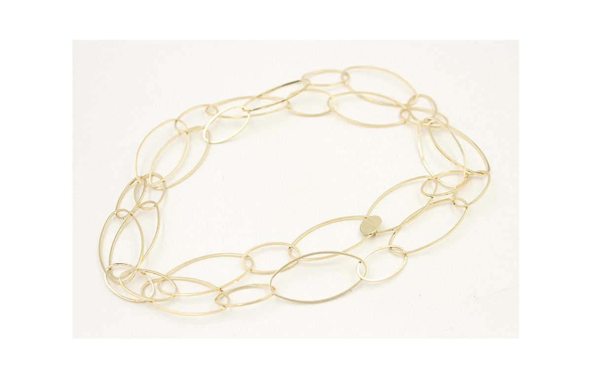 Collar cadena doble ovalo dorada rematada con disco dorado. Largo 95cm.