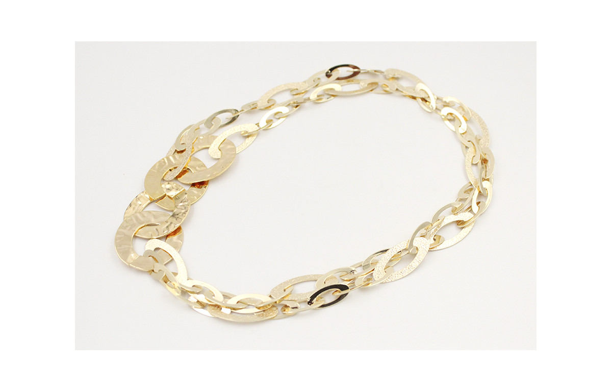 Collar cadena doble eslabón rugoso y liso dorado con eslabín irregular dorado. Largo 57cm.