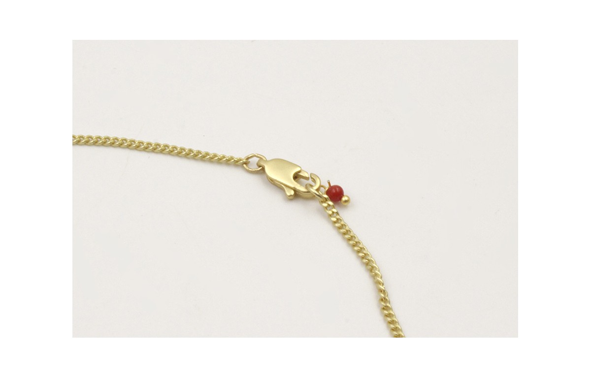 Solitario cadena plana dorada mate con colgante cangrejo esmaltado coral. Largo 38cm.