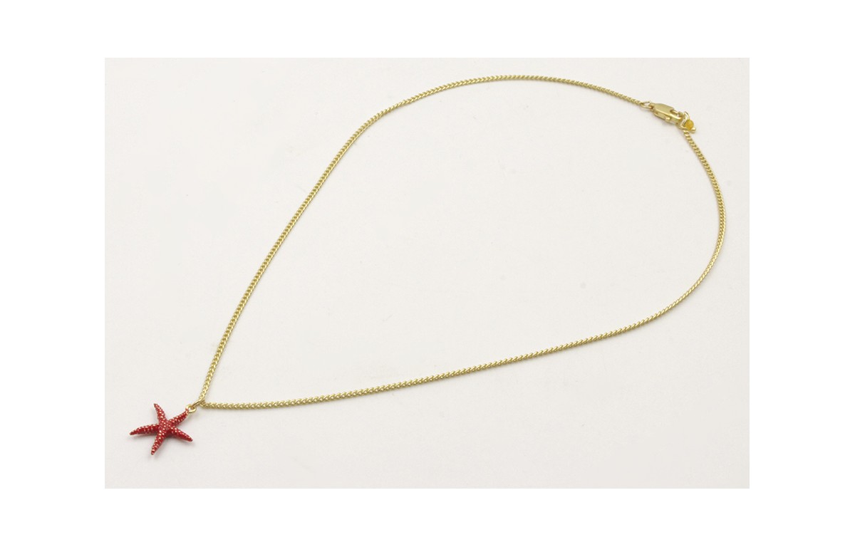 Solitario cadena plana dorada mate con colgante estrella esmaltada roja. Largo 38cm.