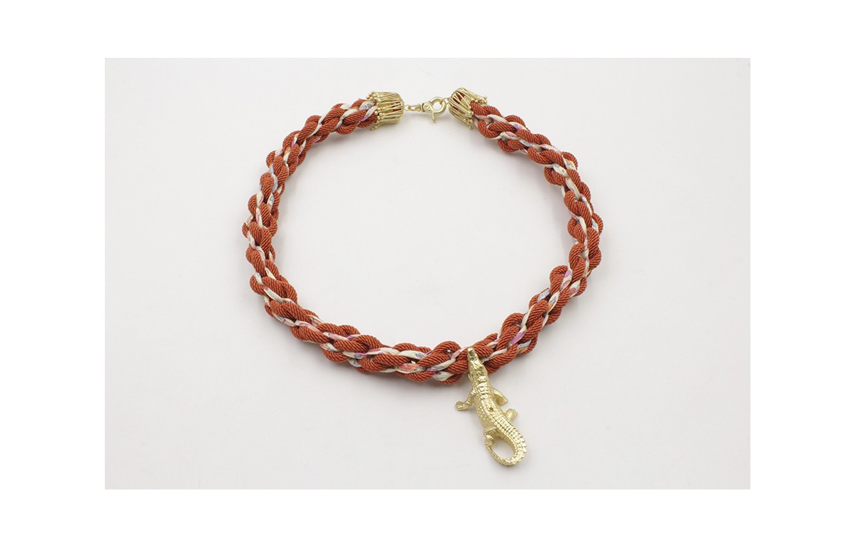 Collar cordón trenzado teja y liberty crema con fl