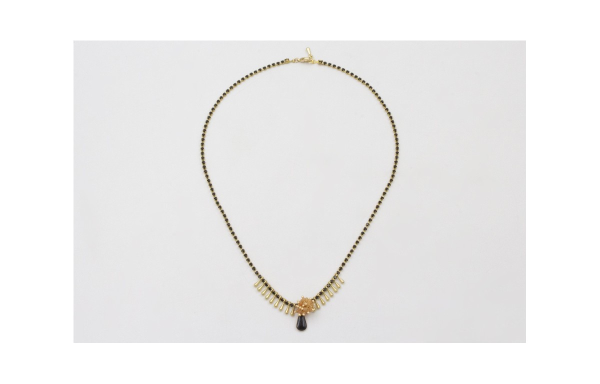 Collar cadena strass negro con gotas doradas mates