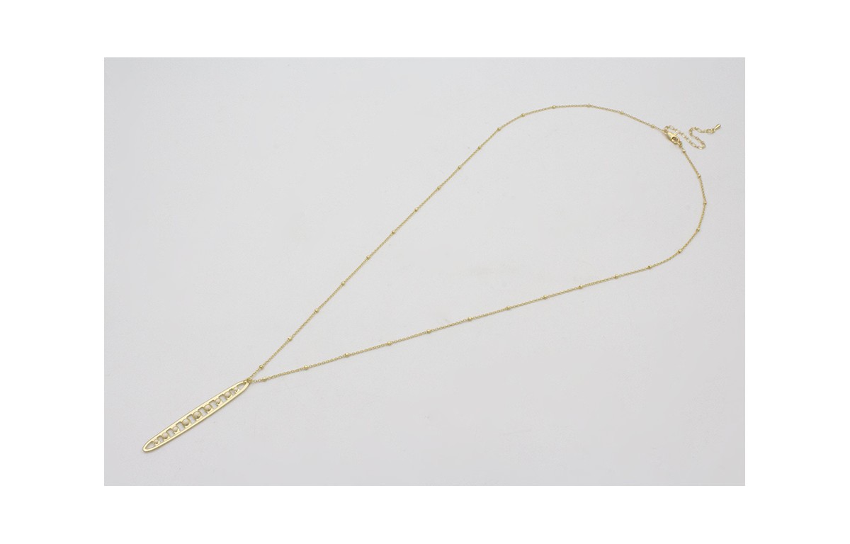 Collar cadena micro bola dorada mate con colgante vaina de guisantes esmaltada blanca. Largo 64cm.