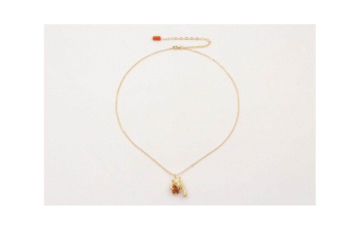 Collar cadena eslabón pequeño con colgante tigre y burruño cubitos marrones brillos.