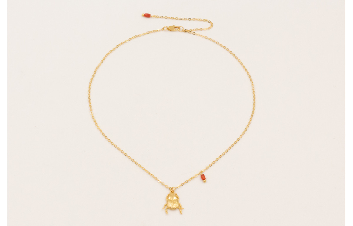 Solitario cadena eslabón pequeño con colgante escarabajo todo baño ORO18K-3micras.