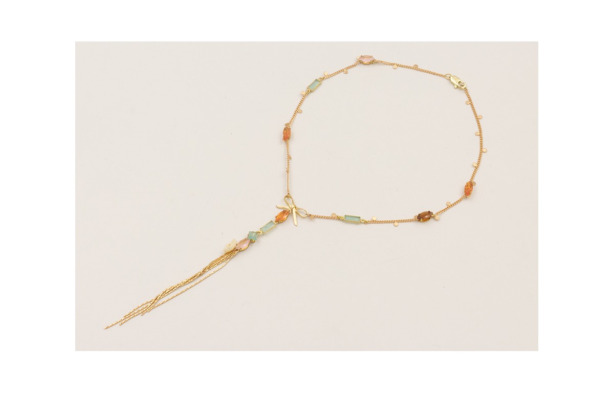 Collar cadena chapitas dorada mate con cabujones d