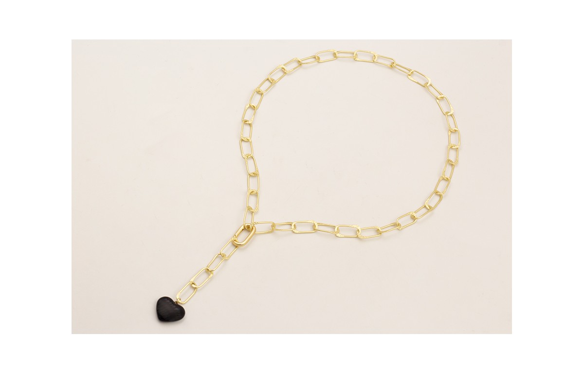 Collar cadena aros ovalados dorados mate con colgante corazón esmaltado negro.