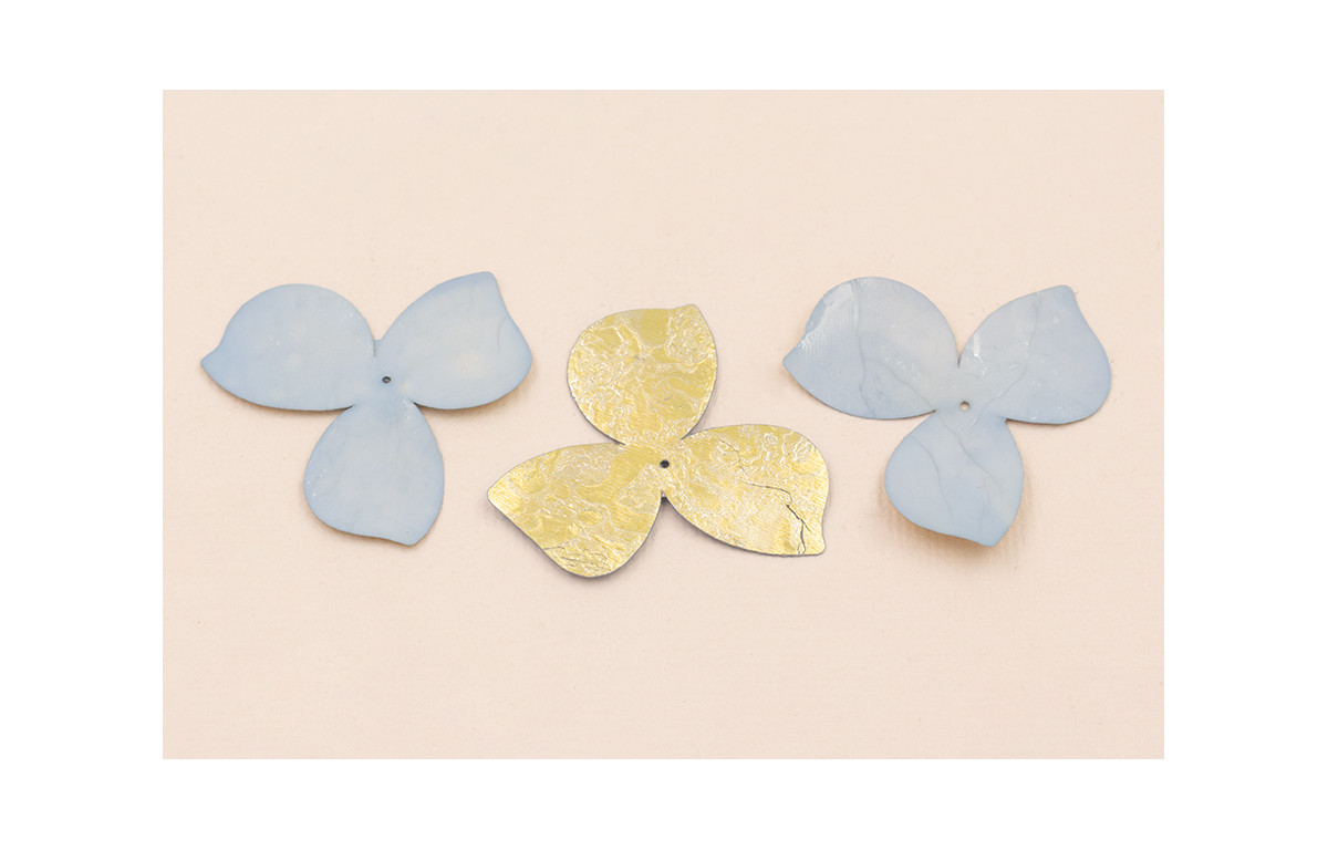 Flor 3 pétalos 35mm diametro Azul claro y Metal