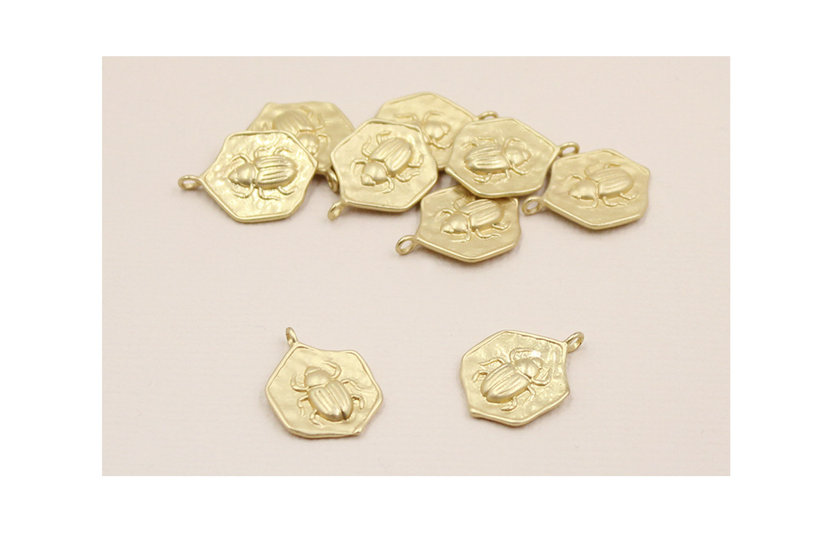 Colgante Hexagonal escarabajo 13mm Dorado Mate