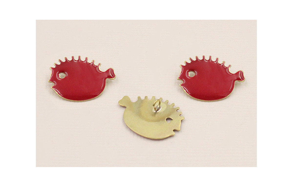 Cuenta Pez Globo 20*15 con Anilla esmalte Coral
