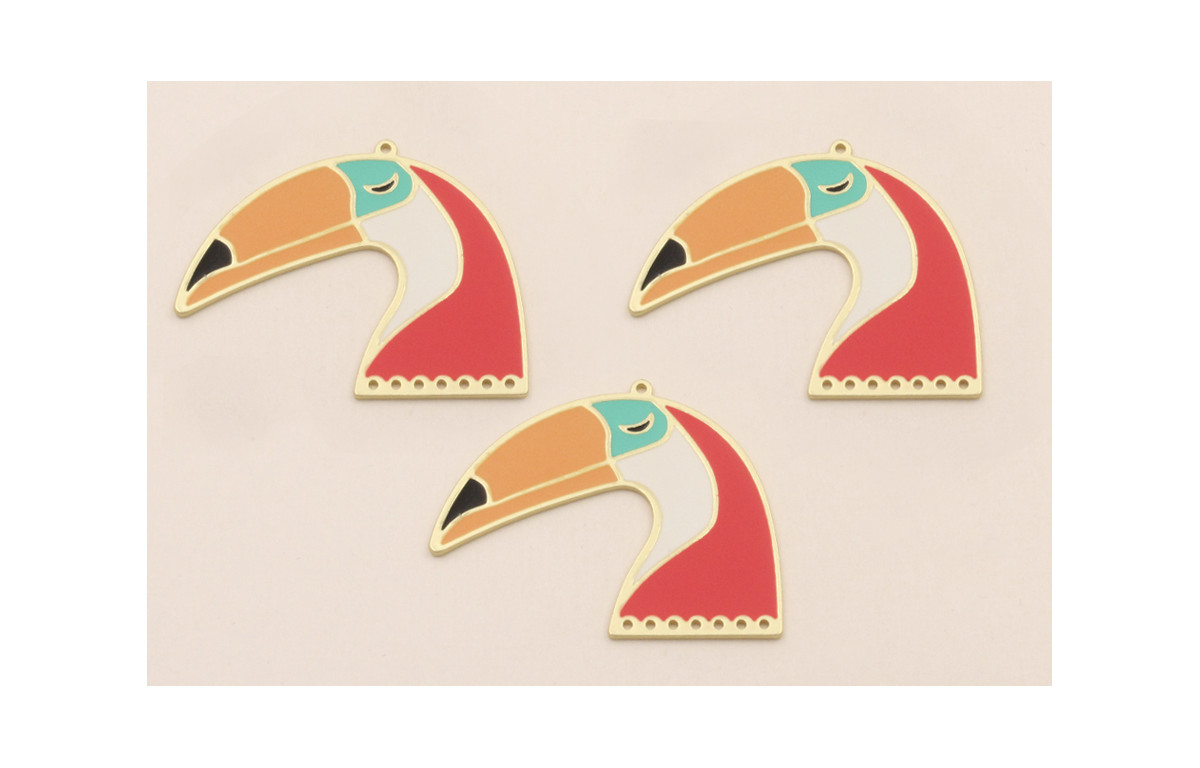 Colgante Tucan 30*40mm Blanco y Coral