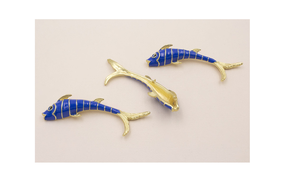 Cuenta Pez 80*15mm Dorado Mate Esmalte Azul