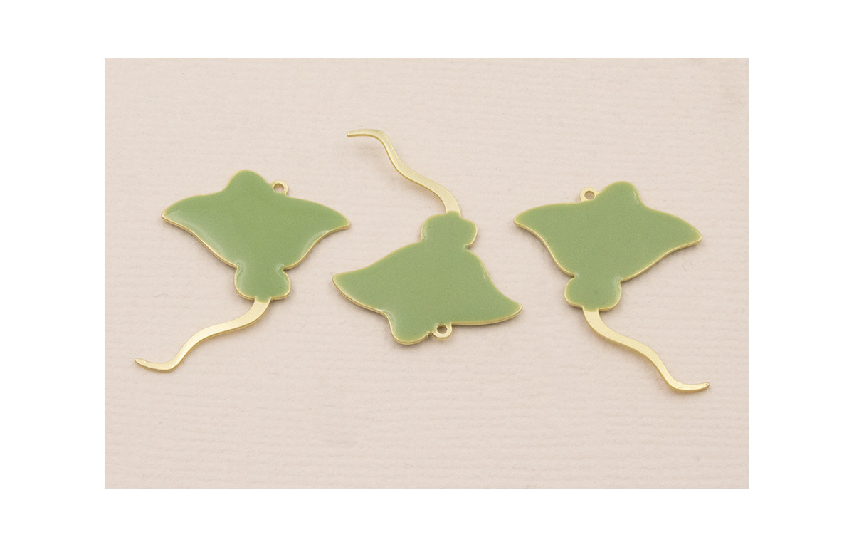 Cuenta Manta Raya 25*20mm verde Oliva y Oro Mate
