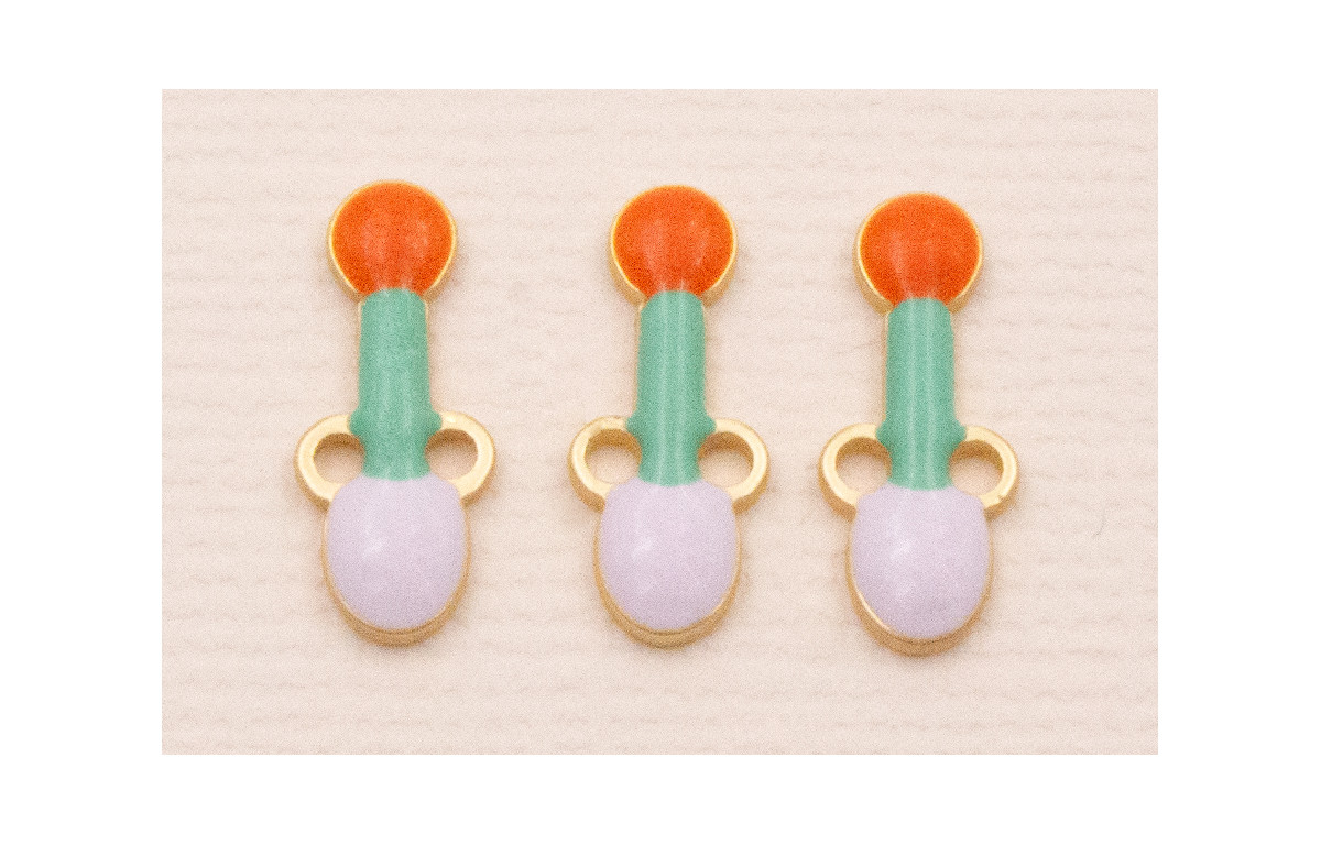 Colgante 15*6 Lila, verde y Coral sobre Oro Mate