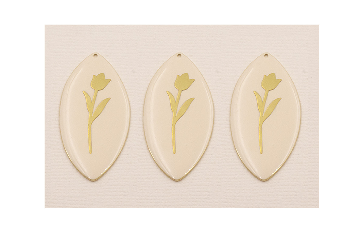 Ovalo Dorado Mate Esmaltado Beige con Flor Dorada