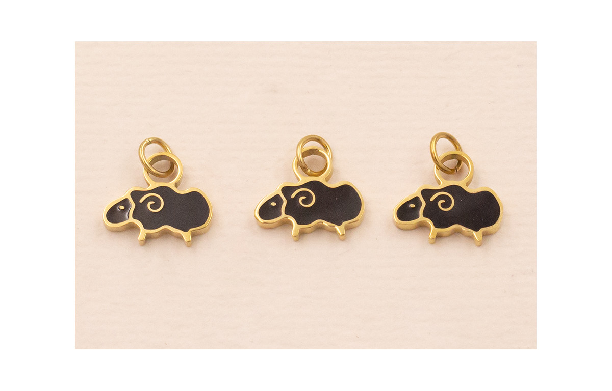 Colgante Oveja Acero 316L 9*5mm Esmalte Negro