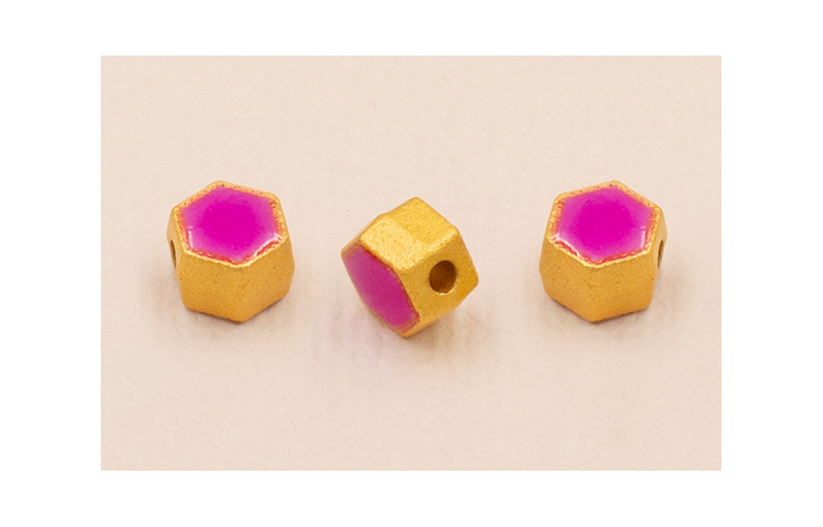 Entrepieza Hexagonal 5*5*4mm Oro Esmalte Morado